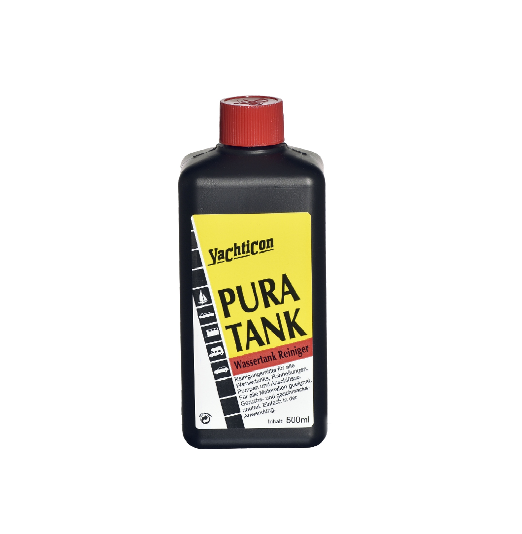 Yachticon priporoča čiščenje rezervoarjev za pitno vodo dvakrat letno s sredstvom Pura Tank ter redno konzerviranje vode z izdelkom Aqua Clean.